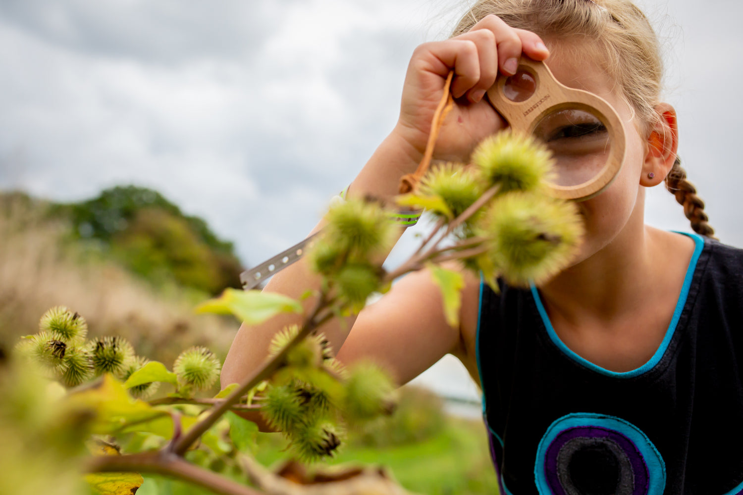 Add flower petals and other small nature finds into the top compartment to create a stunning, one of a kind, kaleidoscopic view!