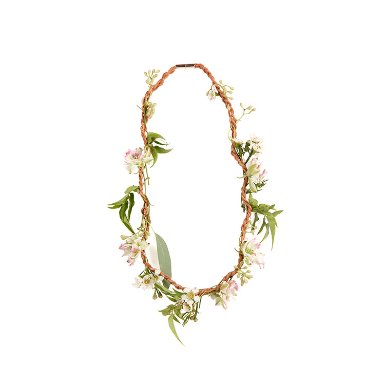 Pick your favorite flowers and make a beautiful necklace for yourself or a friend! Made of genuine leather with strong magnetic copper closure. Instructions: Pick flowers or leaves with long thick stems. Lace the stems through the necklace.